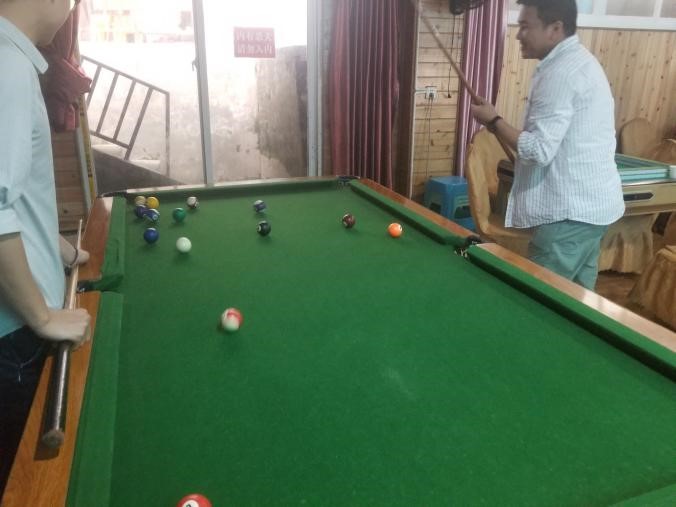 1330分大家到達游玩地點—筑夢小院后,分組開展各項活動:有的在KTV大展歌喉,刻畫出除辦公室形象外、更生動有趣的靈魂;有的欣賞鄉(xiāng)村景色,泛舟湖上,體會大自然的魅力,體驗回歸田園的樂趣;有的進行乒乓球比賽,有的進行臺球比賽。大家根據自己的興趣參加活動,興致高昂。