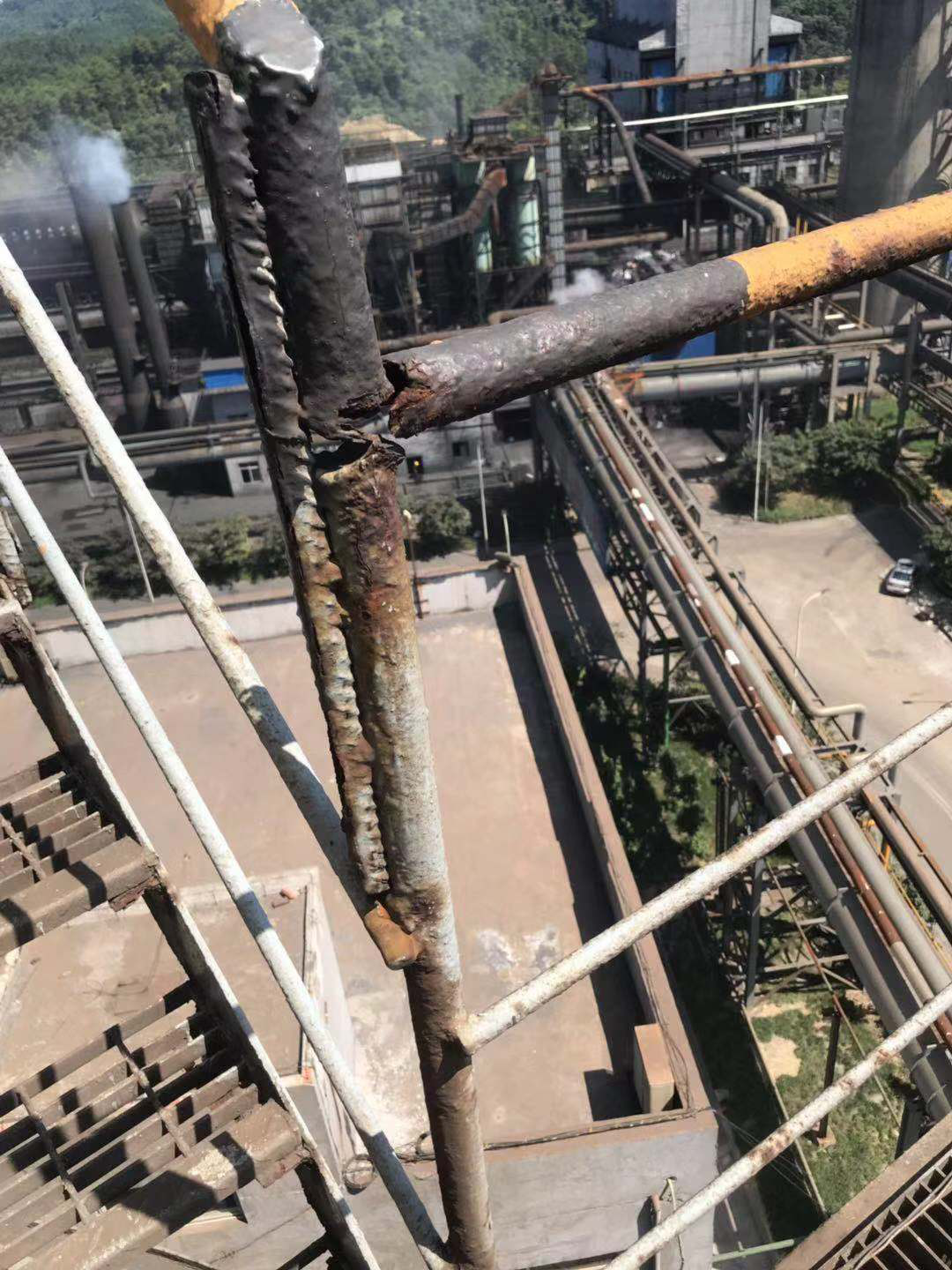 內(nèi)江藍(lán)鼎自接手運(yùn)維工作以來(lái),在實(shí)際生產(chǎn)運(yùn)行中發(fā)現(xiàn)了許多安全隱患,其中燒結(jié)1#2#脫硫塔上塔梯步腐蝕嚴(yán)重,人員上下塔存在嚴(yán)重安全隱患,為保障人員安全,生產(chǎn)部決定將1#2#脫硫塔上塔梯步平臺(tái)進(jìn)行全面修復(fù)更換,拆除嚴(yán)重腐蝕的護(hù)欄、平臺(tái),安裝新護(hù)欄、平臺(tái)。
